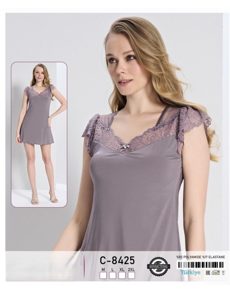 Дуже гарна та стильна нічна сорочка молодіжна з мереживом від турецького виробника фірми Carolina.Сорочка виготовлена з якісної ,гарної,приїмної до тіла тканини та гарного мережива. В таких сорочках буде завжди гарно та комфортно виглядати кожна дівчина.