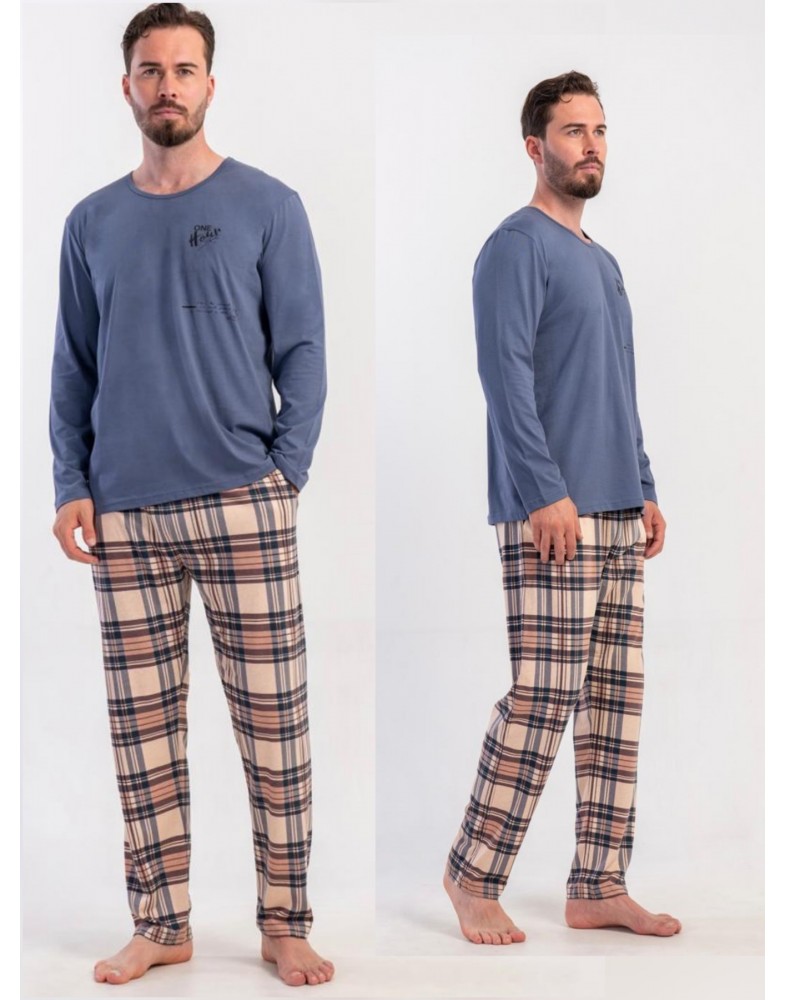 Представляємо вашій увазі стильну молодіжну чоловічу піжаму від відомого бренду Vienetta. Дана модель виконана в сучасному дизайні і ідеально підійде для молодих людей, які цінують комфорт і якість. Піжама складається з вільного светра і штанів, виконаних в класичну клітку.