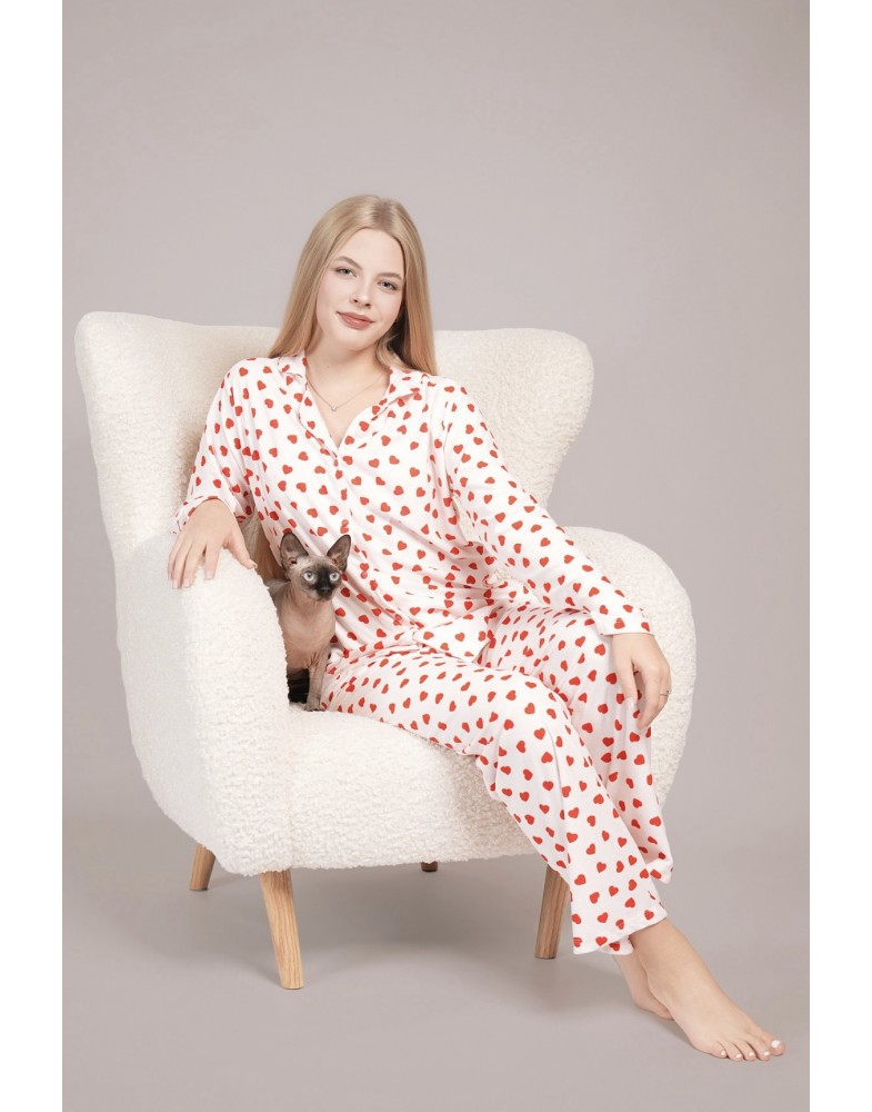 Піжама на ґудзиках від турецького виробника - це зручний і стильний комплект, який складається з джемпера з довгим рукавом і штанів на еластичній гумці. Джемпер прикрашений класним принтом, який надає образу яскравість і оригінальність.