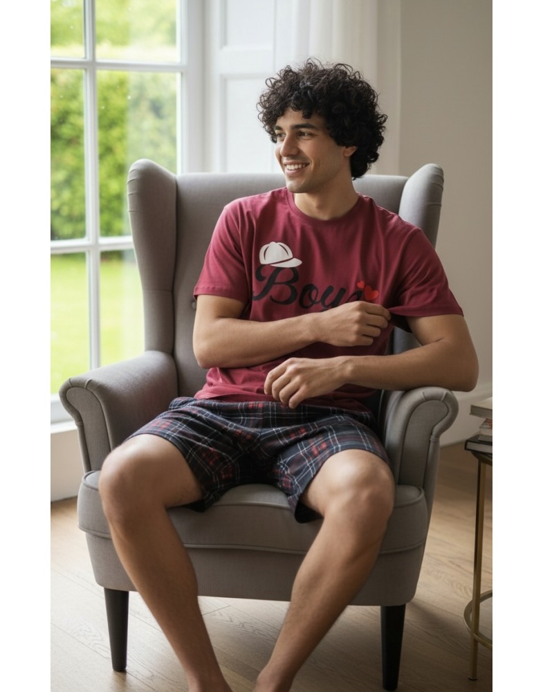 молодежная пижама состоит из футболки с классным принтом и шорт на эластичной резинке