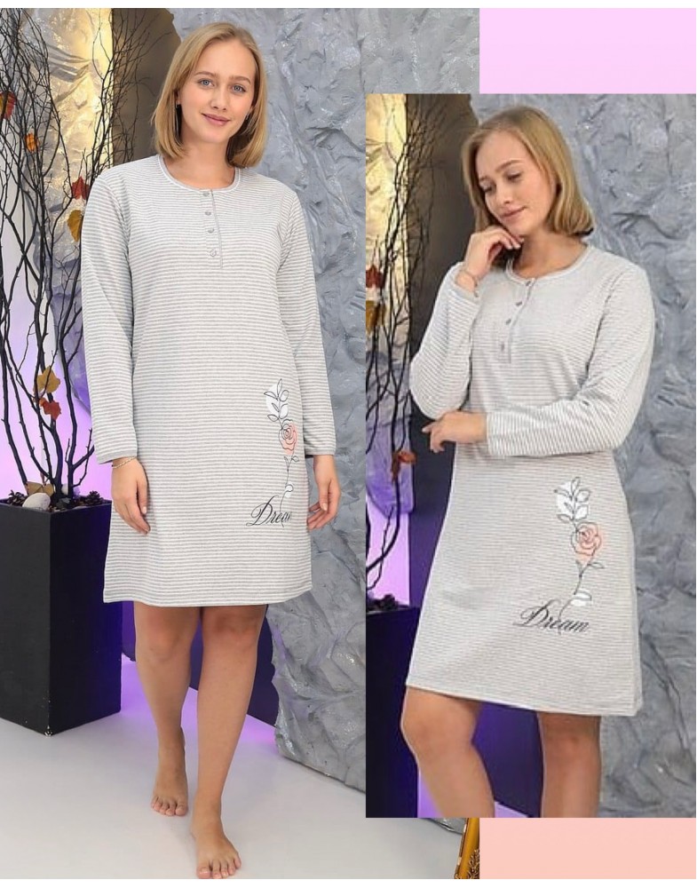 Теплая женская ночная рубашка с длинными рукавами.Байка