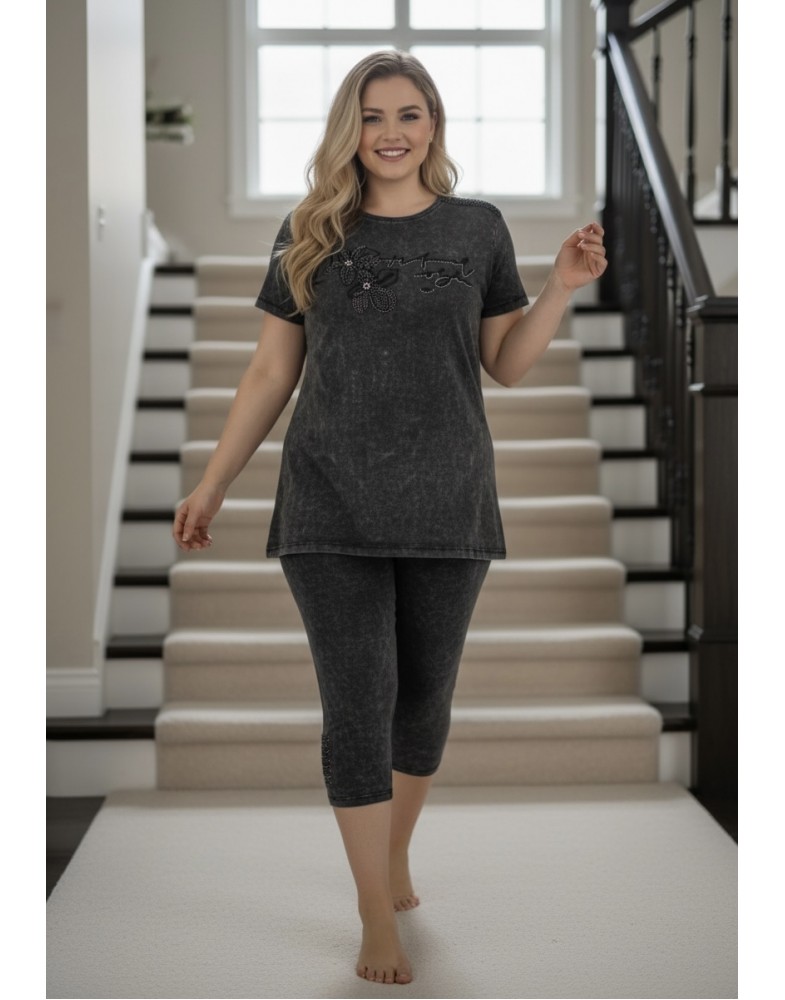 Цей комплект великих розмірів доступний у різних розмірах. Виготовлений з високоякісного матеріалу - 95% бавовни і 5% еластану, що забезпечує комфорт і довговічність. Цей стильний комплект відомого бренду виробляється в Туреччині, що гарантує його високу якість і сучасний дизайн.