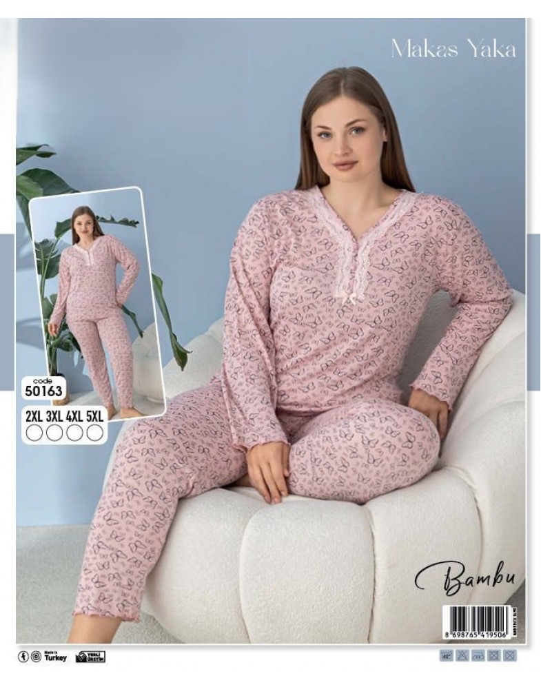 Ця стильна жіноча піжама великого розміру з джемпером та брюками - ідеальний вибір для комфортного сну і відпочинку. Вона доступна в чотирьох розмірах: 2XL, 3XL, 4XL та 5XL, що дозволяє кожній жінці знайти свою ідеальну посадку.