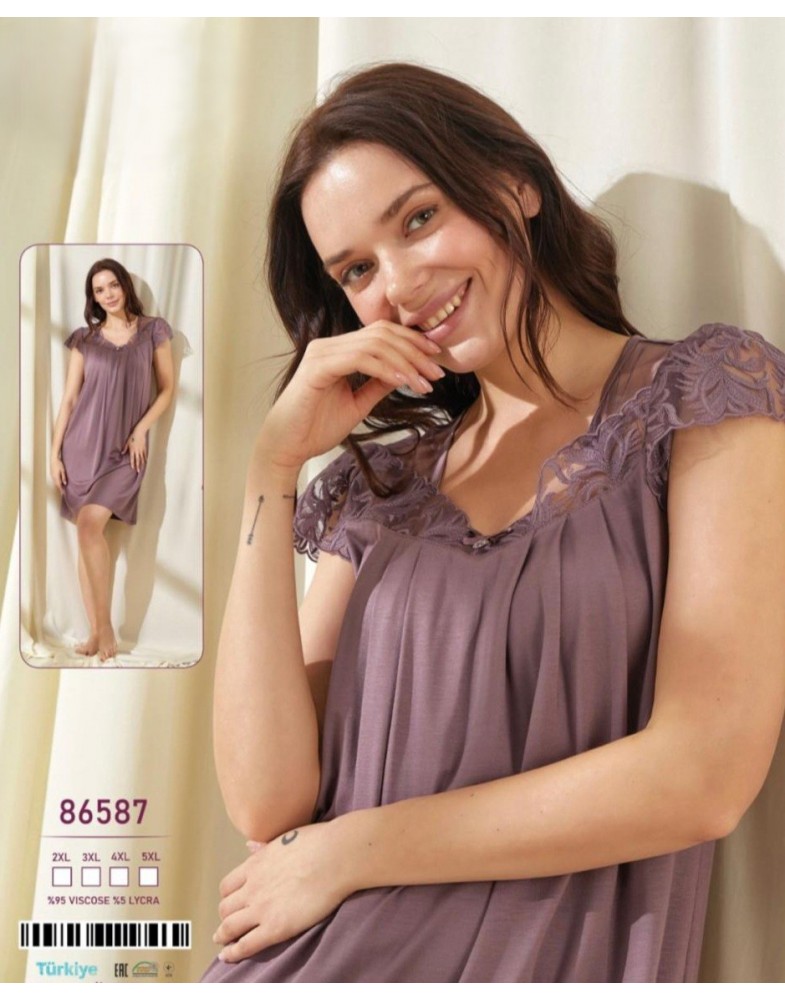 Гарна жіноча нічна сорочка Caroline, прикрашена кружевом, стане ідеальним вибором для комфортного і стильного сну.